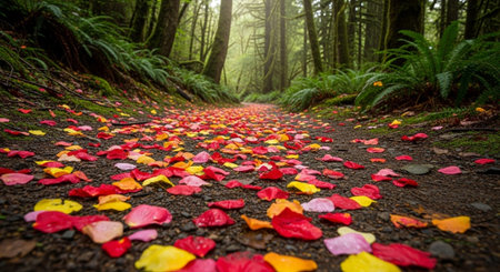 Path in a forest with colorful autumn leaves and trees