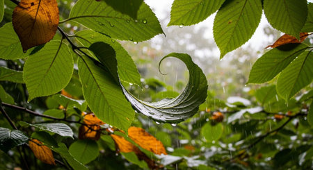 A close-up shot of a vibrant green leaf with dew drops, showing the intricate details of nature's beauty.