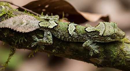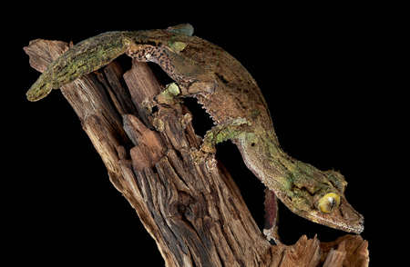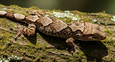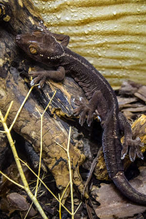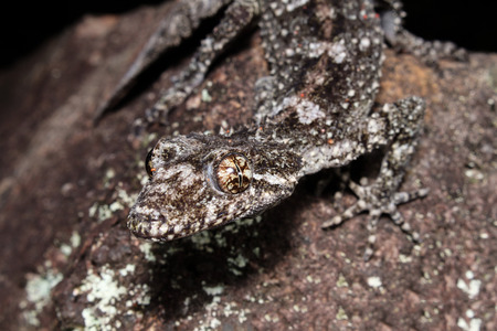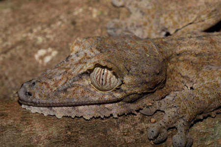 Lateral view of a reticulated new Caledonian bumpy gecko, Rhacodactylus auriculatus, known as gargoyle gecko