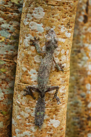 parachute gecko , gliding gecko can fly-move tree to tree and body like tree