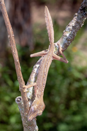 The giant leaf-tailed gecko; Uroplatus fimbriatus, is a nocturnal reptile up to 30 centimeters long that lives endemic to Madagascar. The animals are highly endangered in the wild.
