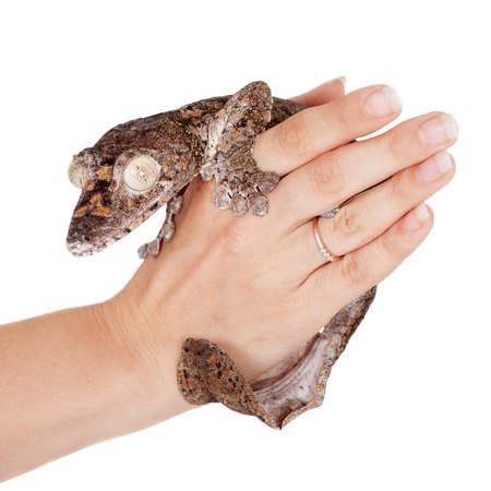 Isolated close up of a domestic beautiful gecko lizard- Israel
