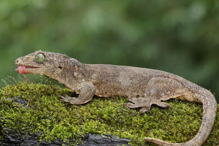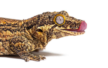 Close-up on a New Caledonia bumpy gecko licking itself, Rhacodactylus auriculatus