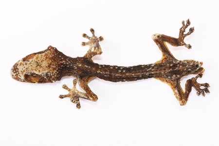 Common flying gecko Kuhl's flying gecko Ptychozoon kuhli isolated on white background.