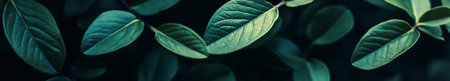 A striking studio shot showcases a delicate gradient of fresh green leaves against a deep dark black background. This natural and organic composition uses a minimal and modern aesthetic, highlighting the texture and intricate pattern of the foliage. This elegant image evokes a sense of calm and wellness, perfect for decorative projects, spa branding, or eco-friendly product design. The isolated arrangement in a flat lay top view provides ample space for text, making this abstract design ideal for diverse creative applications.
