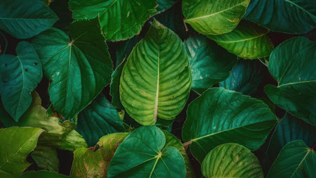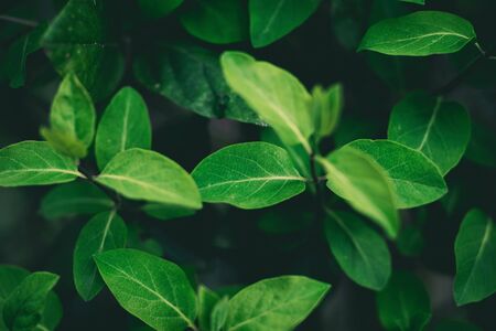 Green leaves background.Green leaves color tone dark in the morning.Tropical Plant in Thailand,environment,good air,fresh.photo concept nature and plant.