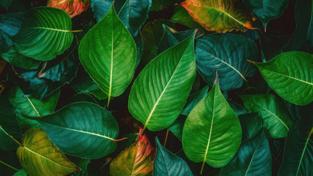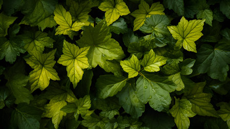 Lush green leaves of various shapes and textures, creating a vibrant natural tapestry.