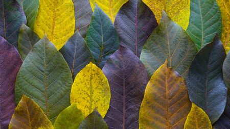 Creative beautiful colorful leafs in autumn for background and backdrop. This is wallpaper for decorate of advertisement.