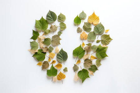 Fall dry leaves representing human lungs on white background Symbolizing minimal COVID 19 or pneumon