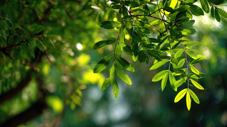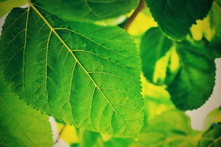 Close-up of vibrant green leaves in natural sunlight, nature and freshness concept