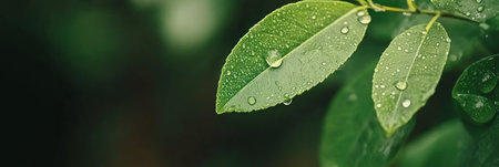 Sparkling water droplets cling to the vibrant green leaves of a plant, creating a refreshing scene of natural beauty after a rainfall, capturing the essence of a thriving ecosystem