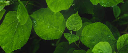 Background from forest plants and flowers after the rain. Can be used as background or wallpaper. Banner.
