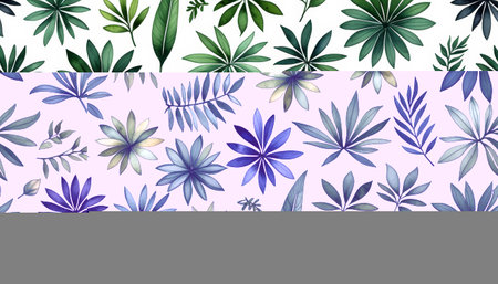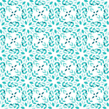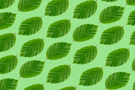 seamless green leaves pattern on blue background Top view flat lay ornament