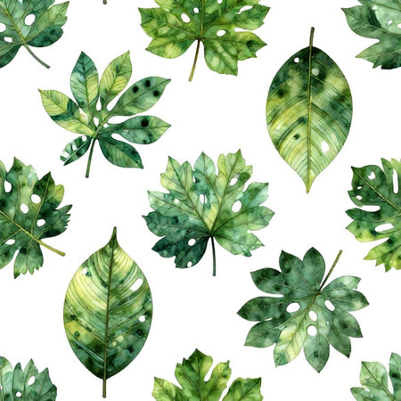 Isolated green tropical watercolor leaves on white background. Natural botanical background.
