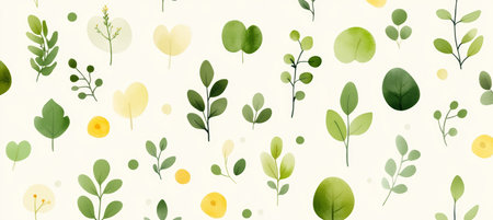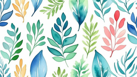 Elegant Watercolor Pattern of Delicate Leaves and Branches, Ideal for Textile Designs and Decor