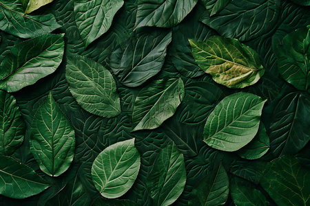 Detailed botanical illustration of vibrant green leaf patterns, showing the textured organic nature backdrop for eco-friendly wallpaper and environmental plant life