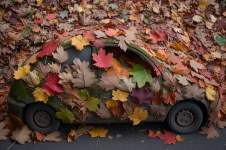 Car filled up by autumn leaves