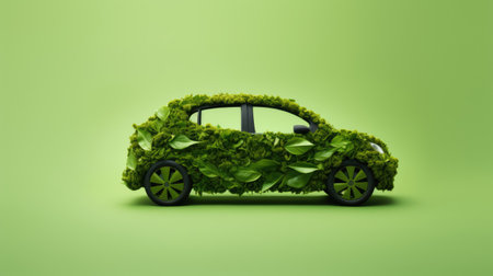 Car made of natural green plants. Eco friendly transportation. Zero emission and no pollution transport concept. Created with Generative AI