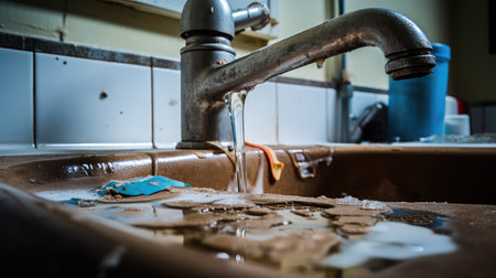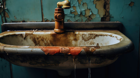rust faucet pour water illustration grime neglect, restroom broken, puddle steady rust faucet pour water