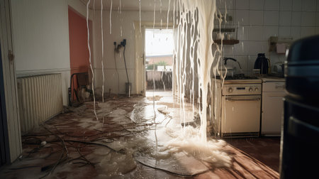 An abstract image of a water leak, with the water creating a stream down a wall.