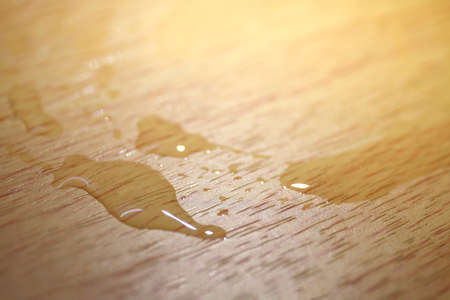 Water droplets on wooden surfaces, Water stain on wood, Water droplet on wooden surface (selective focus)
