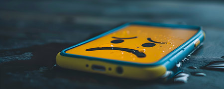 Powerful Depiction of Crying Emoji with Real Tears Falling on a Phone Screen Symbolizing the Emotional Toll of Online Harassment and its Detrimental Impact on Mental Health