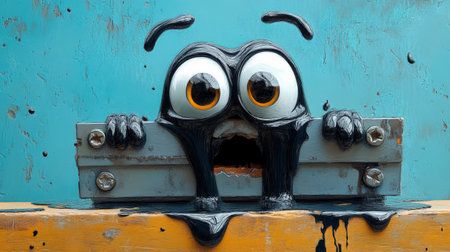 Doodle Hand drawn crying and screaming with tears in the form of splashes face painted on window flooded with raindrops on blue background