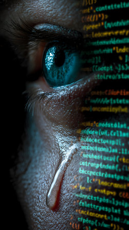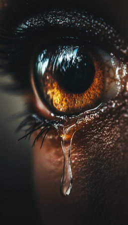 Close-Up Of Teardrop Falling From Expressive, Thoughtful Eye, Conveying Sadness And Pain