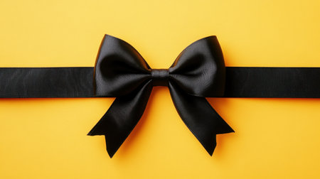 Stunning black bow sits gracefully on a vibrant yellow background, perfect for enhancing gifts and celebrations. Ideal for festive occasions and stylish presentations.