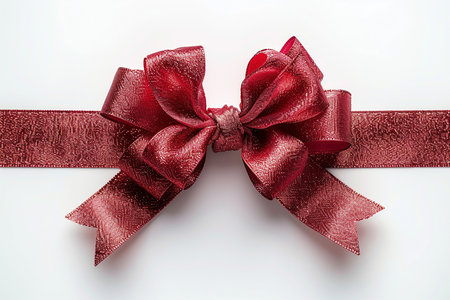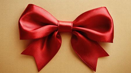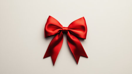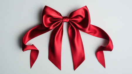 A classic red satin bow, tied with perfect symmetry and placed on a seamless white background, perfect for seasonal or celebratory visuals.
