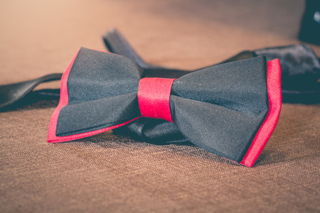 Bow tie accessory used for men's clothing. an illustration of buying placed on the tablecloths