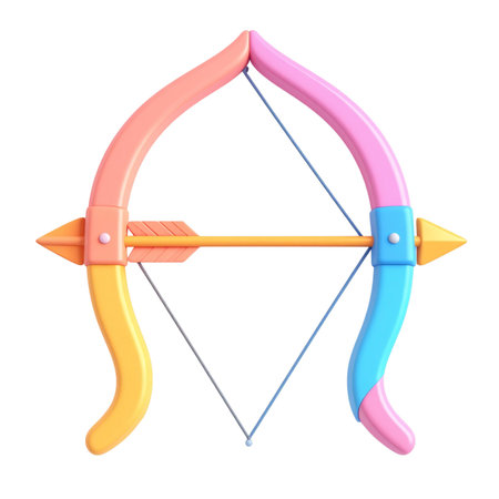 Archery arrow and bow on abstract background. Colorful vector illustration.