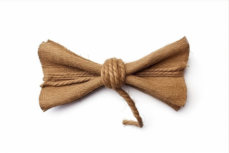 jute ribbons tied in a bow on white background professional photography