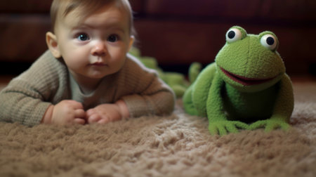illustration of funny frog on orange background with copy space for text. generated by AI