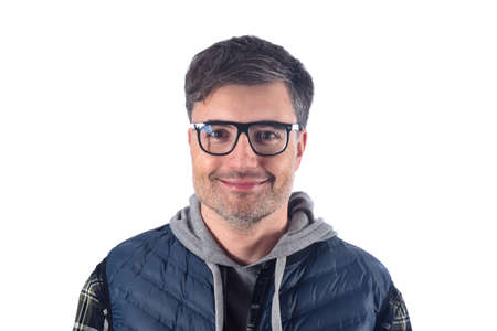 Portrait of happy senior man with a gray beard in glasses cropped view