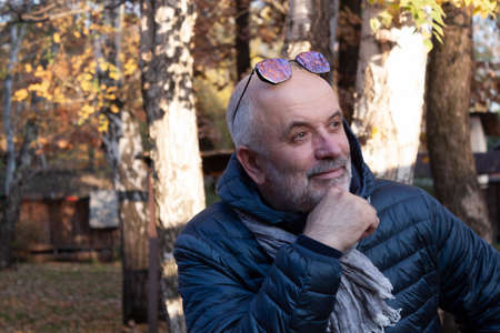 Mature man with beard look to the side in autumn park
