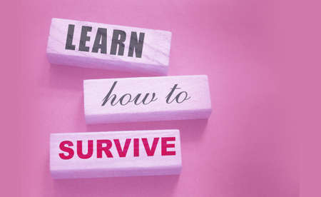 Text on wooden blocks Learn How to Survive. Surviving in crisis times business concept. Surviving during epidemy healthcare concept.