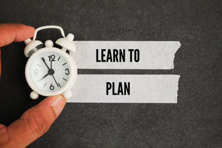 alarm clock and sticker with the word learn to plan. something you have to pursue consciously and thoughtfully
