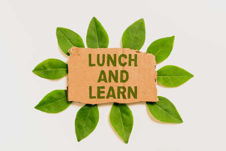 Text showing inspiration Lunch And Learn. Word for Have meal and study motivation for education learning eating Blank Cardboard Paper Surrounded With Leaves For Invitation Card.