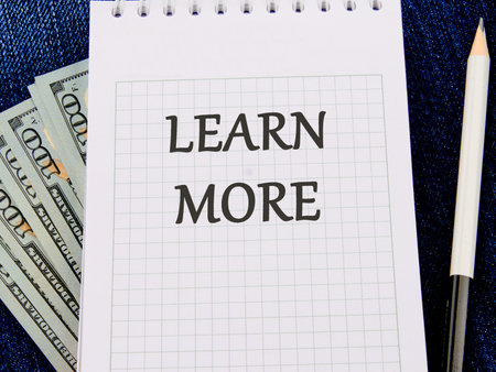 LEARN MORE text on a piece of paper on dollar bills