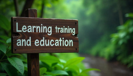 Learning training and education wood sign in vibrant nature