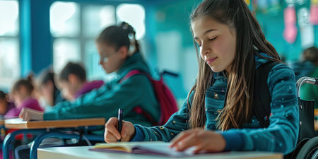 Dedicated student in wheelchair actively participating in inclusive classroom education