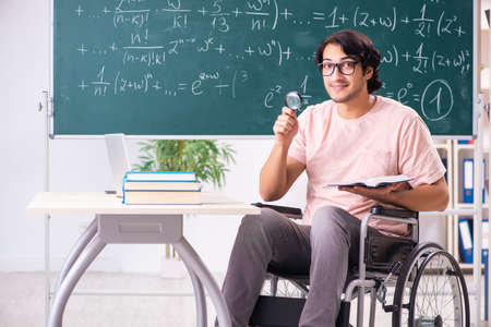 A disabled student in a wheelchair in primary school. Socialization of the individual in society.