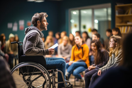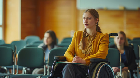 Disabled student in wheelchair engaged in active participation during classroom learning session