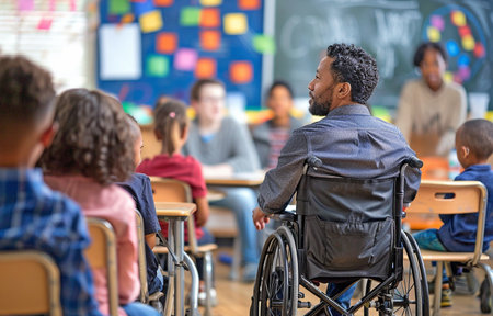 An Innovative Teacher in the Classroom Who Uses a Wheelchair to Effectively Teach Students