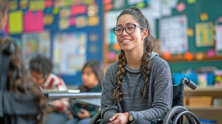 Wheelchair-using Inclusive Education Teacher Facilitating Class Discussion.