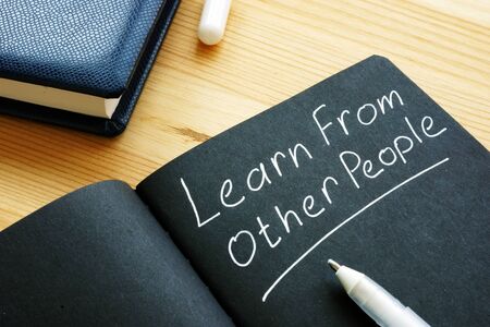 Listen and learn inscription. Phrase that encourages the idea that by paying attention and actively listening, you can gain knowledge and improve your understanding of a subject or situation. Blocks