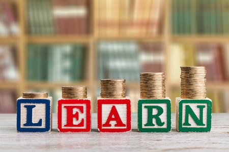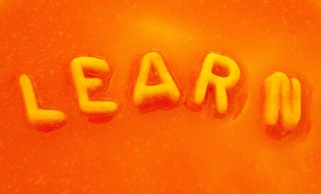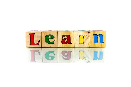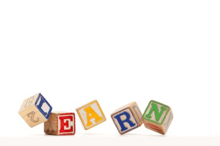 The word learn from wooden cubes. The background was taken in red and in the studio.