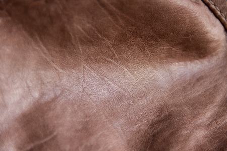 Closeup of brown leather texture background. Macro shot with shallow depth of field.