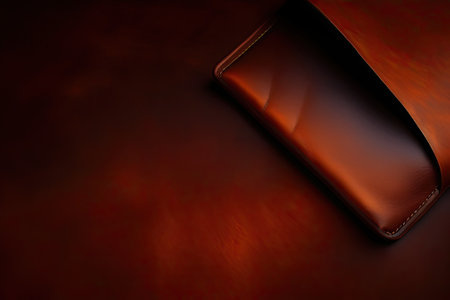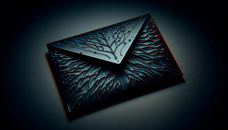 This image showcases a sophisticated brown leather envelope resting on a dark background, ideal for creative projects, stationery themes, and invitations.